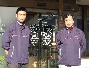 カネジョウ(静岡県・蒲原新田)の事務所で、望月啓一社長と望月英幸専務に取材をしている最中、たまたま商品に関する問い合わせの電話がかかってきた。