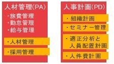 ヒューマンリソース系の業務ソフトは、さらに大きく2つに分類される。人材管理に関わるもの(「PA」と呼ばれる)と、人事計画に関わるもの(「PD」と呼ばれる)である。
