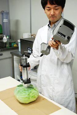 信頼度を高めるため、それぞれの段階で3回データを取るので、実際には1つの野菜の安全を確認するために、計15回もの計測を行うことになる。