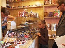 まずウインドーは一見すると、しゃれたおもちゃ屋さんかというようなディスプレー。そして店に入っても、並んでいるもののほとんどが子供向けのアイテム。そんな中に、まるでおもちゃの延長のようなケーキやクッキーなどがあるという具合だ。