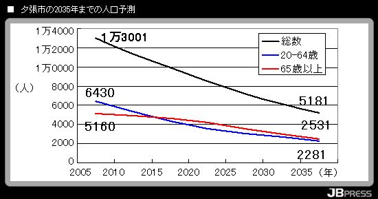 以下の表は、国立社会保障・人口問題研究所が発表しているデータを基に私が作成した表です。夕張市の人口が2035年までどのように推移するかを示しています。人口は25年後の2035年には約5000人、そして、別の長期推計では2050年頃には2000人を切っていると予想されているのです。