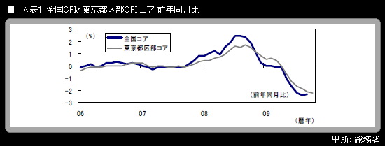 10月30日に発表された9月の全国消費者物価指数は、「生鮮食品を除く総合」(コア)が前年同月比▲2.3%となり、前月からマイナス幅を0.1%ポイント縮小した(図表1)。7カ月連続のマイナスだが、昨年夏にかけての原油バブル要因が前年同月比ベースでテクニカルに剥落してきており、「エネルギー」のマイナス寄与度が縮小したことが主因である(図表2)。