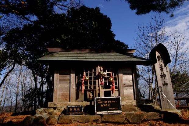 野手上山頂の野手神山神社。この向こうに見下ろす山並みの一角に、クリアセンターと産廃最終処分場がある