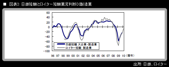 ヘッドラインDIとも呼ばれる大企業・製造業の業況判断DIは、2009年3月調査で▲58まで落ち込んだ後、6月調査で▲48(前期比+10ポイント)、9月調査で▲33(同+15ポイント)、12月調査で▲24(旧ベース;前期比+9ポイント。なお新ベースでは▲25)と、3四半期連続で改善してきた。関連調査の結果からみて、同DIは今回も改善を続けると予想される。