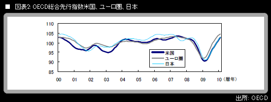 → 経済協力開発機構(OECD)総合先行指数の動きを見れば明らかなように、巨大バブル崩壊の震源地である米国経済の動きと、ユーロ圏や日本さらにはBRICsの経済の動きは、落ち込みとその後のリバウンドの双方で、おおむね連動してきた。筆者が6つのポイントを指摘した2008年10月から時間が経過し、景気動向は現在ではグローバルに上向いている。だが、モノとマネーの流れの中心点である米国経済がバブル崩壊後の「構造不況」の様相を呈しており、グローバルに需要の水準が大きく下方シフトして、需給のギャップが拡大している。このため、BRICsなど新興国の経済が相対的に力強い回復を遂げていても、世界経済が設備投資や個人消費の持続的で力強い回復を伴う局面に移行するには至っていない。むしろ、雇用市場の弱さが日米欧経済の回復力を、今後もしばらく抑制する展開が続くとみられる。