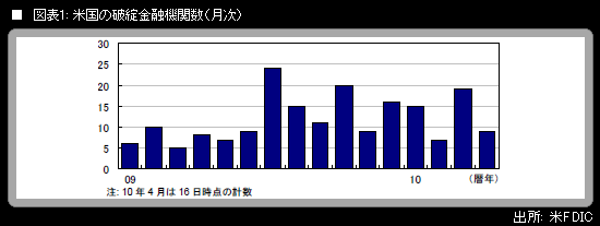 → 金融面の爆発的とも形容された危機状況は、各国が協調しての「政策総動員」措置によって沈静し、金融市場は落ち着きを取り戻した。だが、金融危機が完全に「鎮火」したとまでは言えない。例えば、米国の地方銀行の破綻。米連邦預金保険公社(FDIC)は4月16日、8つの地方銀行が新たに破綻したことを明らかにした。年初からの米国の破綻金融機関数は50行に達している。通年で140行が破綻した昨年の場合、年初から4月17日までに25行が破綻していたので、今年の方が破綻のペースははるかに速い。FDICが2月23日に公表した2009年末時点の問題金融機関は702行で、9月末から27%の増加。1993年6月末以来の高水準に達している。