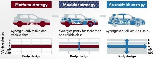特にフォルクスワーゲン・グループは、クルマの作り方の基本から新しいステップに踏み出す方向へと動き出したことを公にした。「ゴルフ」を核とした幅広い主力車種群を、基幹部分は共通化を進めつつ作り分け、しかも世界に展開した彼らの生産拠点を縦横に活用する技術戦略を構築した、というのである。
