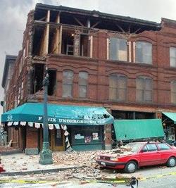 2001年2月の「ニスカリー地震」で崩れた市内パイオニアスクエアのレンガ建築など。(写真=国立公園局)