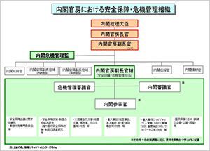 尚、内閣官房長官及び副長官を補佐し統理する者として「内閣危機管理監」が置かれているが、任務は「国の防衛に関するもの以外の危機管理」とされている。
