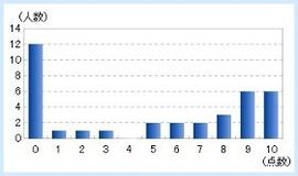 (4) 分布が0点に一番多いもの実は、このいずれのデータも、人数は36人、平均点は5点なのである。平均点は同じ5点なのに、(1)と(4)では大きく印象が違うと思う。