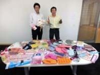 商品見本を手にする大野社長(右)と谷口ユニットスーパーバイザー
