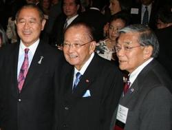 2012年の米日カウンシルで一堂に会した日米要人。左から藤崎一郎前駐米大使、故ダニエル・イノウエ上院議員、ノーマン・ミネタ元運輸、商務長官