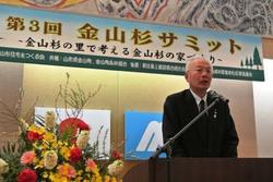 金山町の鈴木洋町長。第3回金山杉サミットで