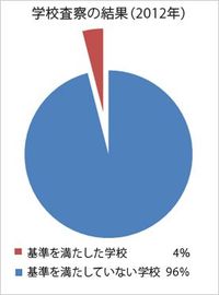 2012年に査察を受けた小中学校のうち、「問題なし」とされた学校はわずか4%。残りの96%、全国745校のうち715校が何らかの点において「不十分である」とされている。