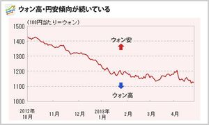 「朝鮮日報」(2013年4月27日付)に興味深い記事が載った。円安・ウォン高のあおりで、「ビッグマック」などの価格の「日韓逆転現象」が起きているという。