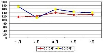 中国自動車工業協会の発表によれば、2013年5月の乗用車の販売台数は139万6900台で、2012年の128万1900台に比べ9%増加した。中国の自動車販売台数は、2013年に2000万台を突破するとも言われている。
