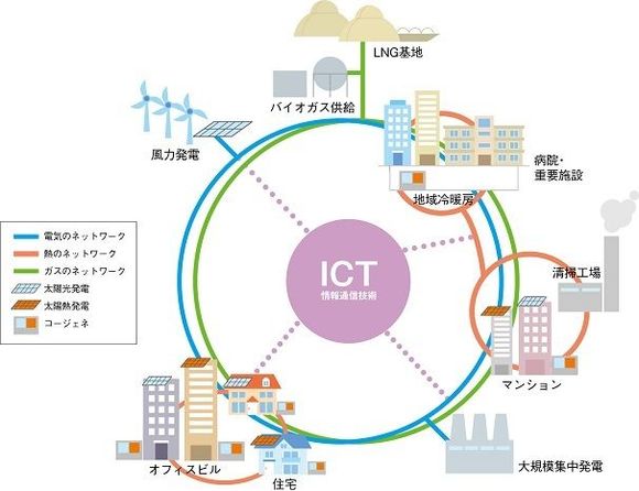 そんななか、注目を集めているのが「スマートエネルギーネットワーク」だ。コージェネレーションシステムを中心に、さまざまなエネルギーを組み合わせ、さらにICT(情報通信技術)で地域全体をネットワーク化することで、エネルギー利用の最適化を図ることのできるシステムである。