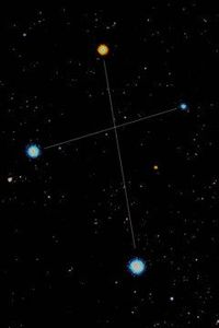 南十字星。十字の下端にあるアクルックスと左端のべクルックスは1等星