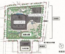 ワテラスは、統廃合で閉校となった旧淡路小学校跡地を含む、「淡路町二丁目西部地区第一種市街地再開発事業」(施行区域面積約2.2ha)によって生まれた2棟の建物からなり*1、地上41階建ての「ワテラスタワー」にはオフィス(全15フロア)と分譲マンション(333戸)の他、1~3階部分に「ワテラスコモン」と呼ばれるコミュニティー施設が設置されている。