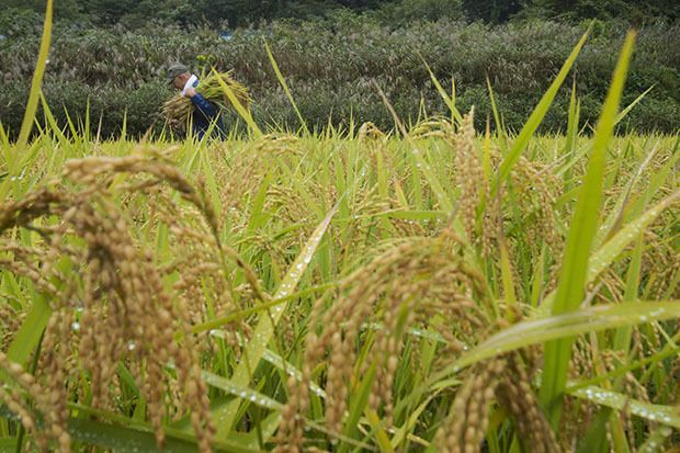 小宮の田んぼの畦で、サンプル刈り取りの合間に菅野宗夫(かんの・むねお)さんが話してくれた。