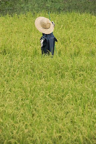 2013年9月14日、ふくしま再生の会・佐須試験田に立つ案山子