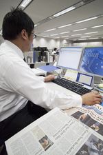 前日にファンドマネジャーなどに問い合わせていた回答を確認するとともに、農林中金の海外支店からの最新の情報を入手するためだ。マーケット情報と併せて検討し、チームや部内で共有すべき情報を精査していく。約80名の部員が参加する朝会の準備を兼ねた仕事だ。