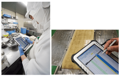 「ただ、製造現場や開発現場は水を常時大量に使い、包装現場や倉庫は埃が多く、PCを設置したり、タブレットを持ち込むことができません。事務室のPCでプリントアウトして、現場に持ち込んで使っていました」と内田氏。