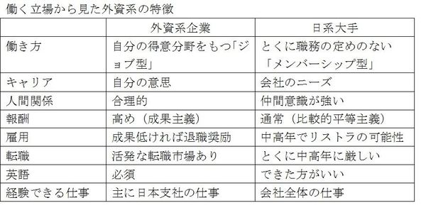 外資系の魅力は、何と言っても自分はこの仕事ができる、という専門性が身につくことで、労働市場での価値が高いことだ。不確実性が高い時代には、望ましいと言える。