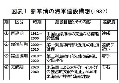 これらは、劉華清の海軍建設構想(図表1)に具体的で、習近平国家主席が米中首脳会談で語った「太平洋は米中を受け入れる十分な広さがある」あるいは俗に言われる「米中二分論」にも表れている。