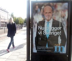 保守・穏健党党首のラインフェルト氏は選挙ポスターで「さあ、スウェーデンを建設しよう!」と呼びかけたが、敗北を喫した