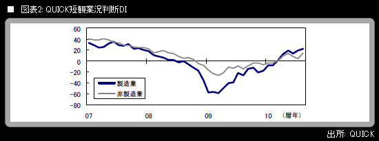 QUICK短観の8月調査(調査期間:7月28日~8月10日、376社が回答)で、業況判断DIは、製造業が+22(前月比+3ポイント)で、2007年11月以来の高水準。非製造業が+15(前月比+11ポイント)になった。製造業の11月見通しDIは+15である。数字の動き方としては、ロイター短観と同様のものになった。