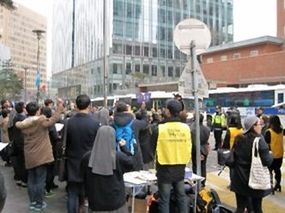 今年3月、ソウルの日本大使館近くで行われた反日デモの様子