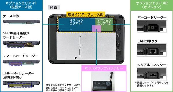 例えば、ある現場ではここにスマートカードリーダーが、また別の現場ではLANコネクターが付けられる。FZ-M1の発売から半年以上が過ぎた時点で、そのオプションの数は、当初の4種類から倍の8種類にまで増えた。
