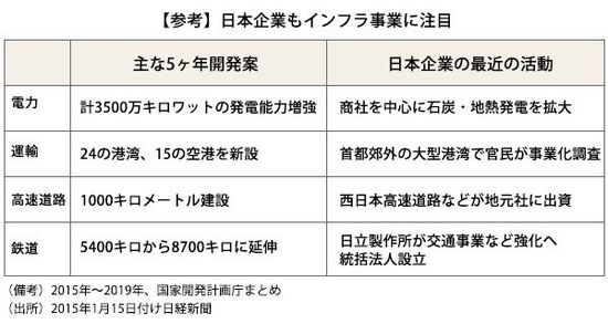 中長期的な視点から見れば、インドネシアはインフラ開発に莫大な資金と技術が必要となる。現状、発電や交通インフラが不足しており、世界銀行データでは、インドネシアの物流効率は世界で第53位と低迷し、マレーシア(第25位)やタイ(第35位)に大きく遅れをとっている。