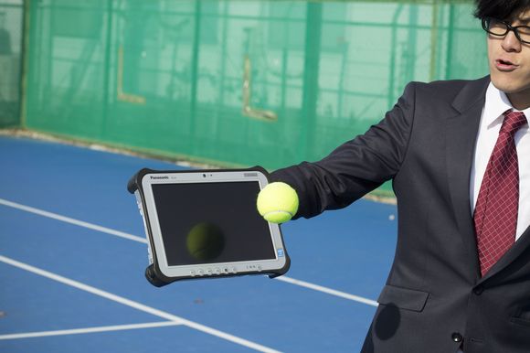 豪速球が飛び交う激しいラリーに私は肩を壊したが、タフパッドはスマッシュの衝撃すら物ともせず、何事もなかったように正常に動作した。タフな相棒は、またしてもビジネスの限界を突破したのだった。ありがとう、タフパッド! ホントごめんなさい、部長!