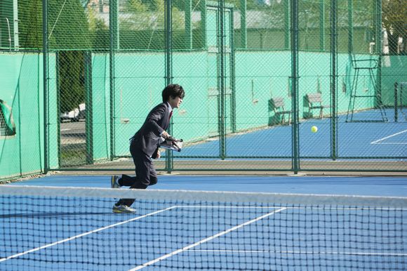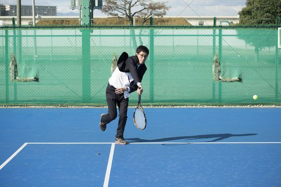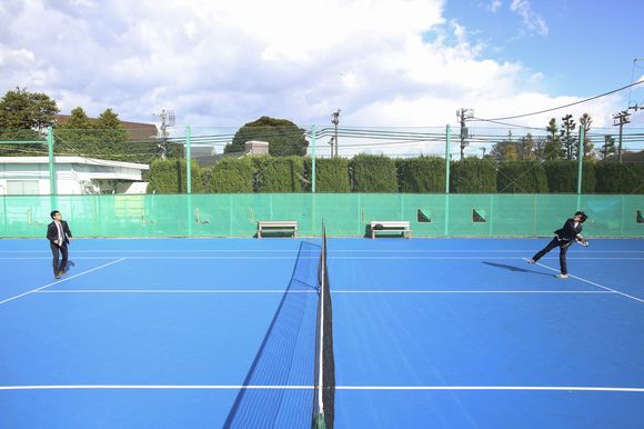 そのとき、僕らは1つの風になった――。この異種格闘技みたいなテニス、ちょっと楽しいかも。だいぶこっちの方が不利な気もするが……