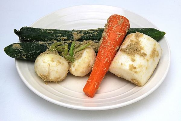 漬け物の代表格、糠漬け。糠と塩のなかに野菜を入れて混ぜるだけで、生野菜とは味が一変する。