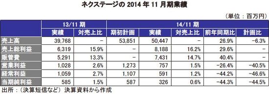 (1)2014年11月期の業績概要-天候不順や消費増税の影響で予想を未達に