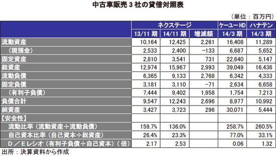 同社は、2014年4月の消費税率引上げ前の駆け込み需要を取り込む営業活動をしたものの、2月の大雪により関東甲信越地方の店舗における週末の来店客数が2週続けて減少した。増税後は、消費者による贅沢品であるクルマの買い渋りが見られた。成約の低迷により在庫の鮮度が落ちたため、8月に創業以来の大規模な処分をオートオークションで敢行した。見切り売りが一時的に収益性を毀損したものの、在庫の入れ替えが奏功して第4四半期(9月-11月期)は1店舗当たり並びに従業員1人当たりの月間販売台数が前年同期の水準を上回った。