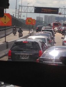 シンガポールとジョホールバルを結ぶ国境橋コーズウェイリンクの渋滞(写真提供:筆者)