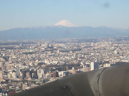 ハーネスをきつく締めた体を少し伸ばすと、東京都心の住宅街が200メートルほど下に見えた。しばらくすると左手には富士山が綺麗に見えた。