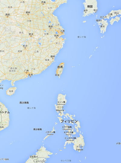 フィリピン西部の南沙諸島で中国は人口島造設工事を進めている(Googleマップ)