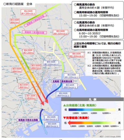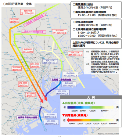 趣旨としてはオリンピック開催、観光促進、地方創生に向けて羽田の国際線の飛行回数を現在の6万便から約10万便へと2020年までに増やすというもので、その実現には従来の東京湾上空や千葉県中部経由の飛行ルートだけでは足りないというのです。