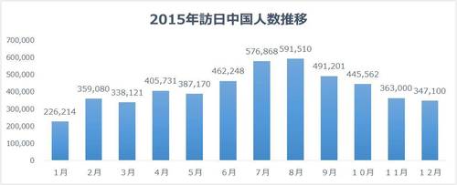 日本政府観光局(JNTO)の発表によると、2015年の訪日中国人数は約500万人(499万3800人)で過去最高を記録しました。株価の低迷や経済の減速等が言われているにもかかわらず、2016年も訪日中国人数は増加すると予想されています。
