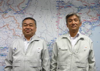 写真2 中日本高速道路東京支社 静岡保全・サービスセンターの石橋所長(右)と竹沢更新工事担当課長