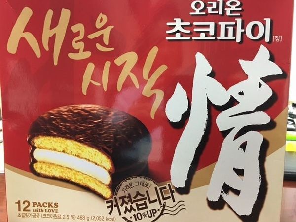 韓国で人気のチョコパイのパッケージには漢字で「情」の文字が