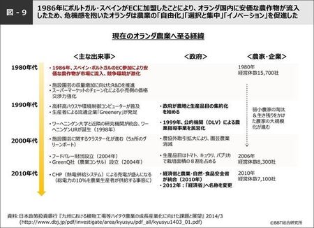 世界第2位の農産物輸出額を誇るまでに成長を遂げた、現在のオランダ農業の出発点は、1986年のポルトガル、スペインのEC加盟でした(図-9)。