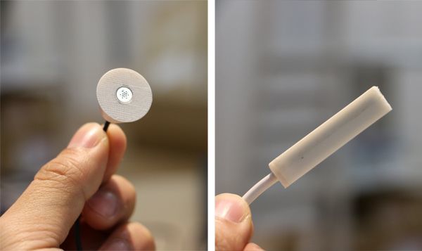 左:低周波をとりやすくした触感センサ 右:アクチュエーター