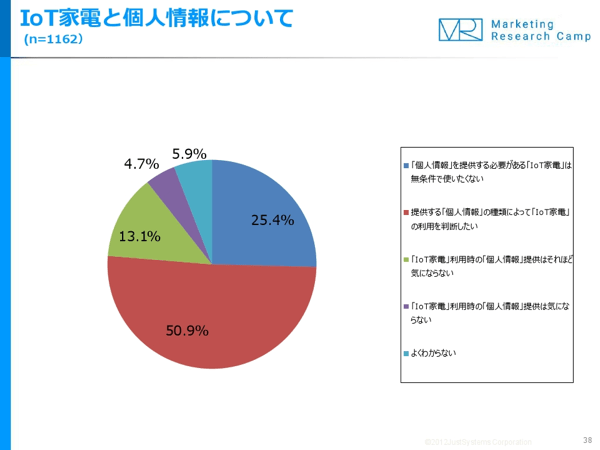 しかしIoT家電は利便性が高まる一方で、利用状況や位置情報など、さまざまな個人情報が蓄積されたり送信されることになる。こういった個人情報の取り扱いについては懸念を抱く人も多く、ジャストシステムが実施した『“IoT家電”に関する実態調査』によれば、4人に1人が、個人情報の提供が必要ならIoT家電を「使いたくない」と回答したという。