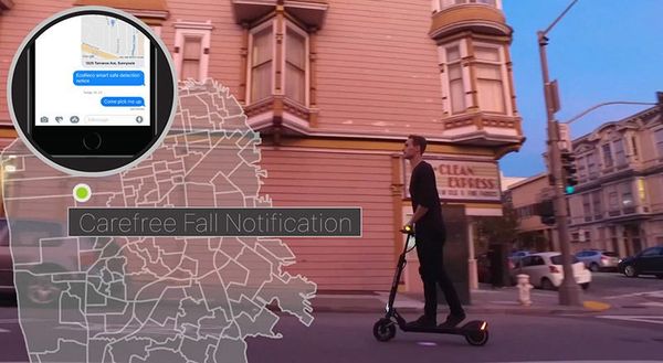 Model R には特許取得済みの「ケアフリー落下通知機能」を搭載。アクシデントの発生時など、スクーターに搭載されたセンサーに動きが数秒検知されない場合、スマートフォンから事前に設定された緊急連絡先にテキストメッセージを送信してくれる。万が一、身動きが取れない状況に陥っても連絡ができるのは、スマートモビリティであるがゆえの機能だ。